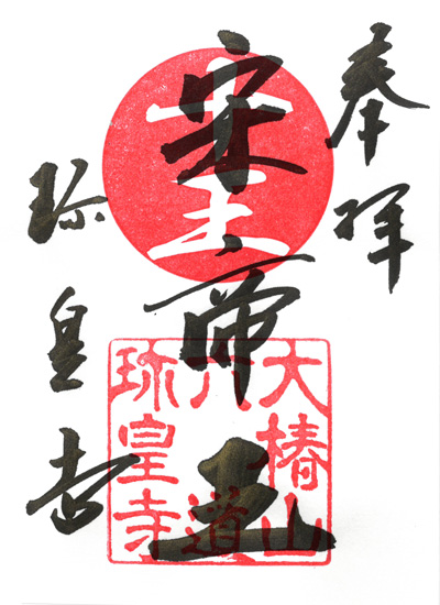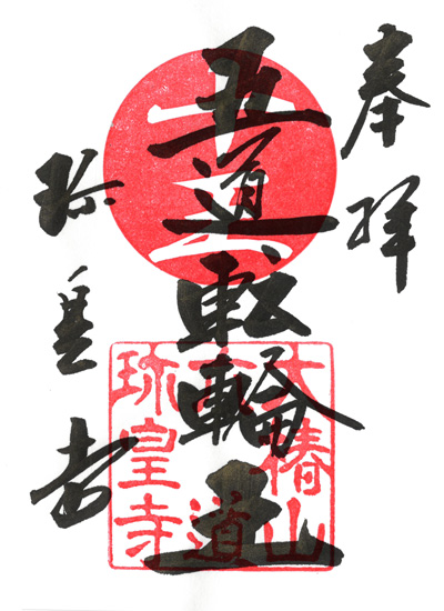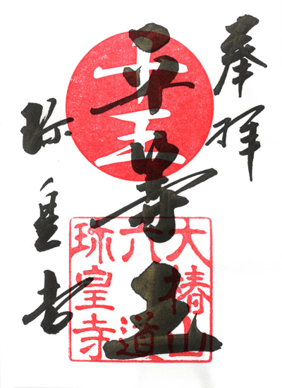④十王「初江王」黒メタリック見開き直書き御朱印の授与